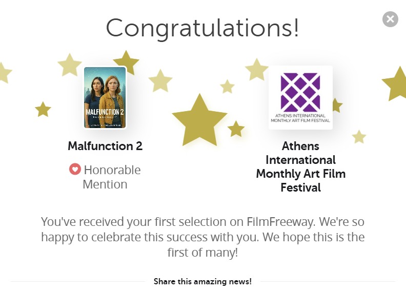 MALFUNCTION 2 GOT NOMINATED FOR BEST SCI FI AT THE BOCAS FILM FESTIVAL.