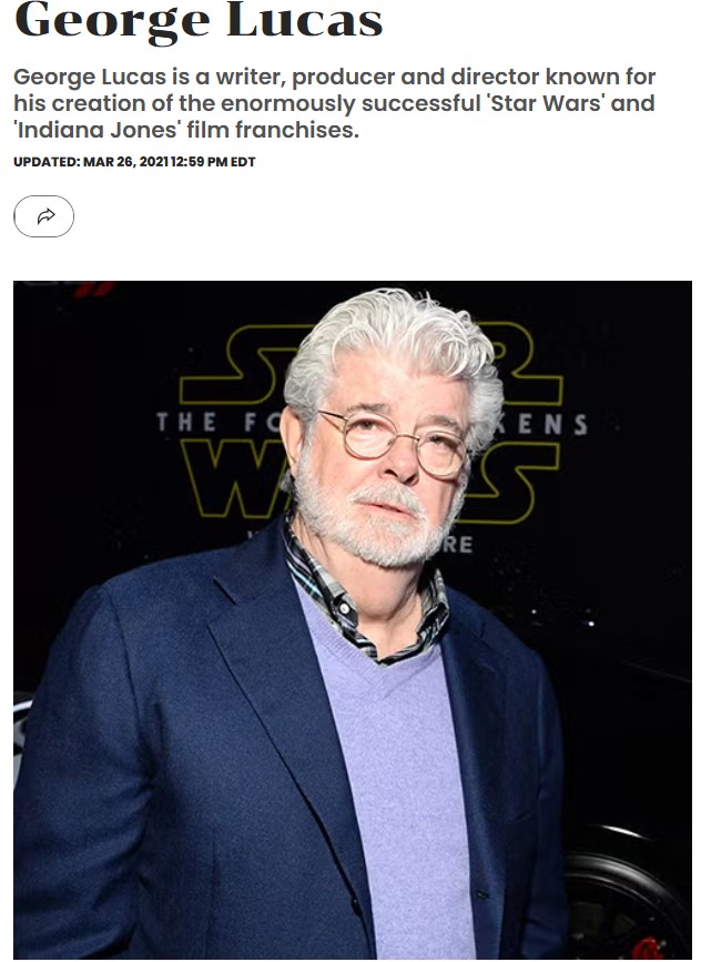 Director George Lucas is an American filmmaker and writer. He studied cinematography at the University of Southern California and caught the eye of Francis Ford Coppola, who helped him enter the film business. Lucas is best known for writing and directing Star Wars and creating the Indiana Jones series, as well as founding the Industrial Light & Magic special effects company.